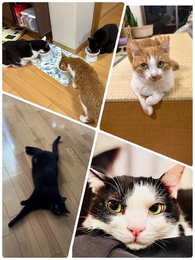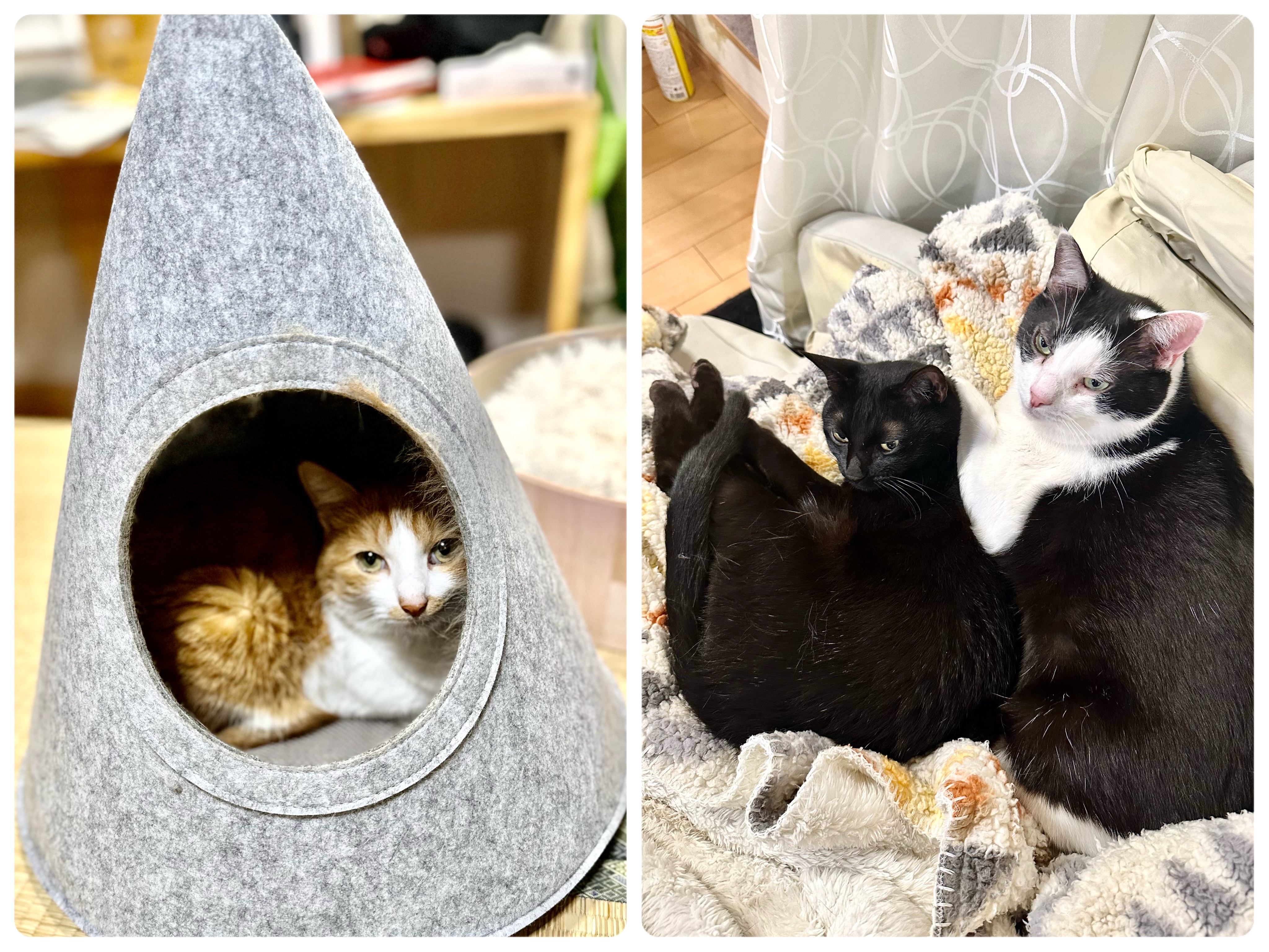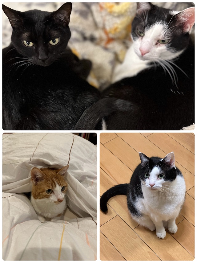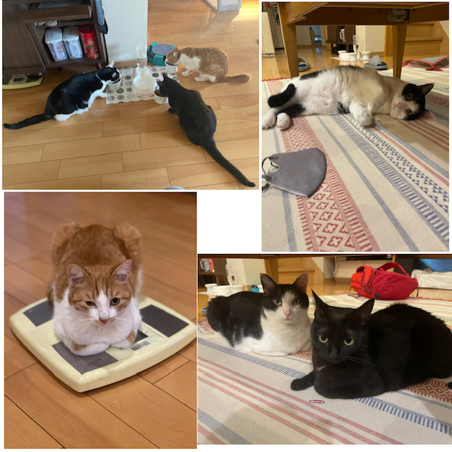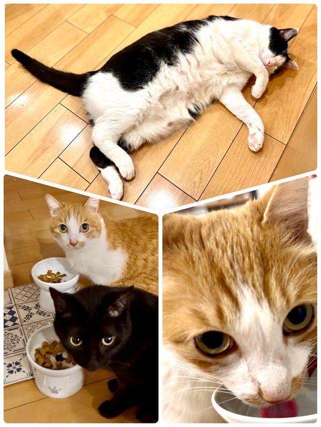 珍しく3匹が並んで寝てます、1番暖かい所が分かるみたいですね。