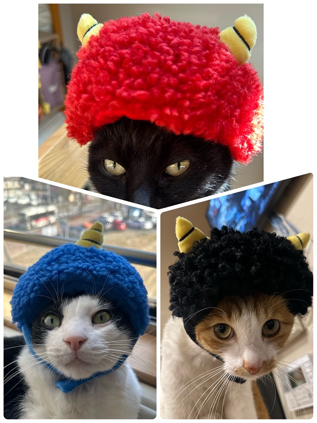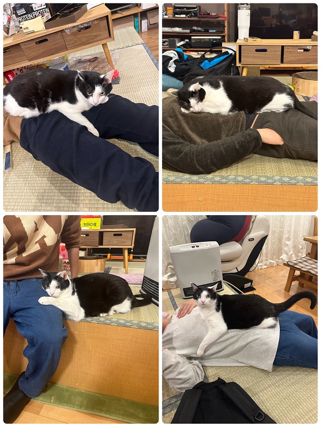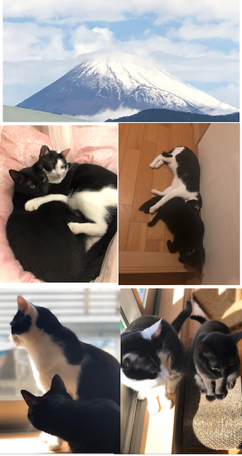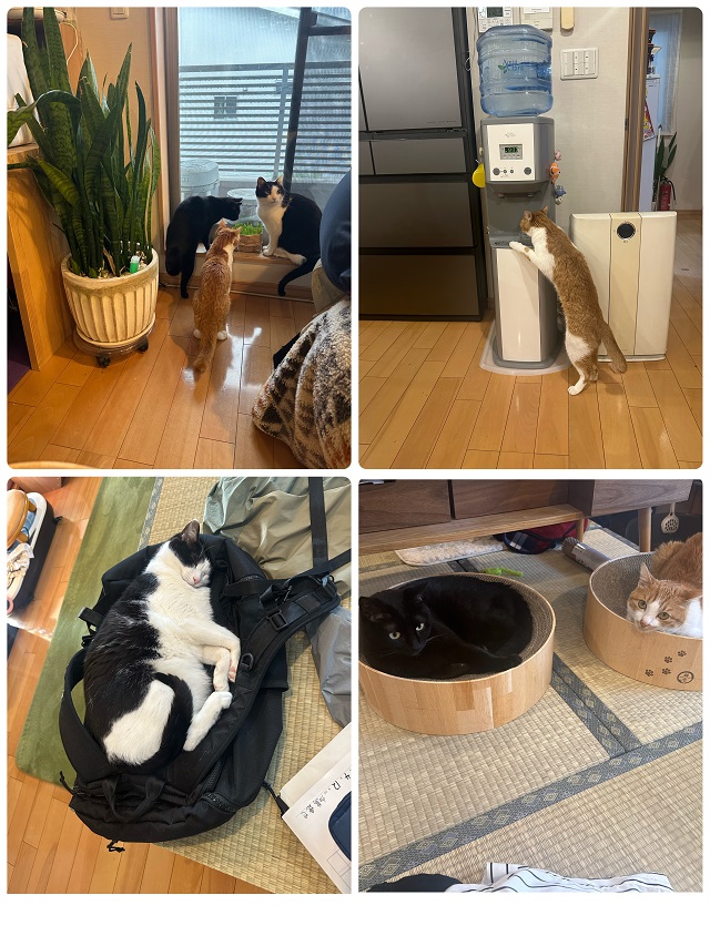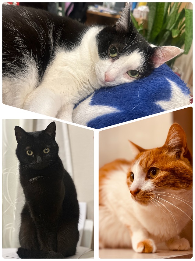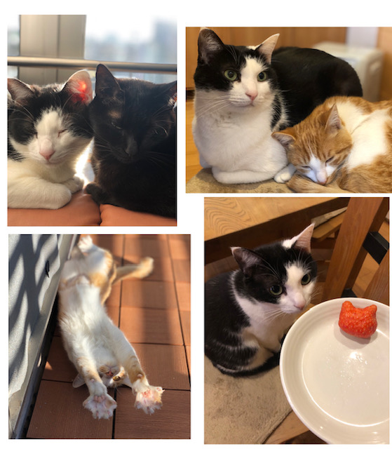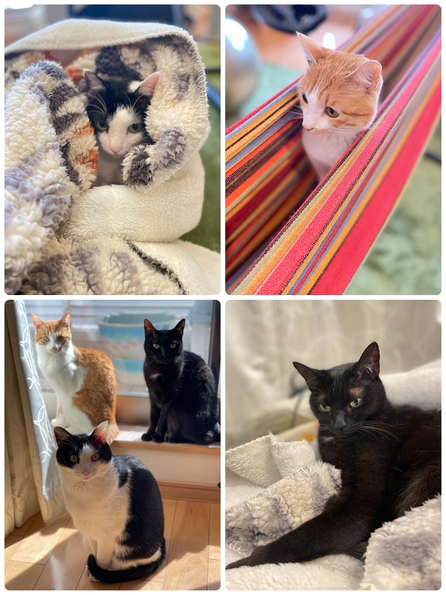 珍しく3匹が並んで寝てます、1番暖かい所が分かるみたいですね。