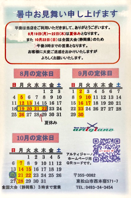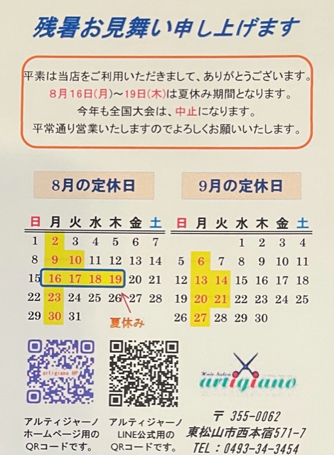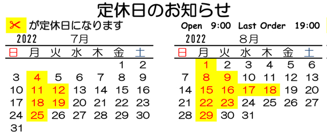 7月20日に開催される関東甲信越大会が中止になりましたので、19日も通常通り営業致しますので宜しくお願い致します。