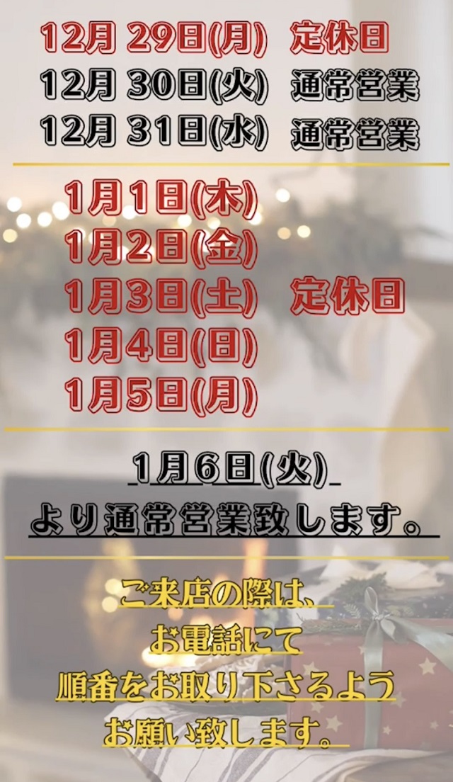 新型コロナウイルスの影響で延期になりましたので通常営業致します。宜しくお願い致します。